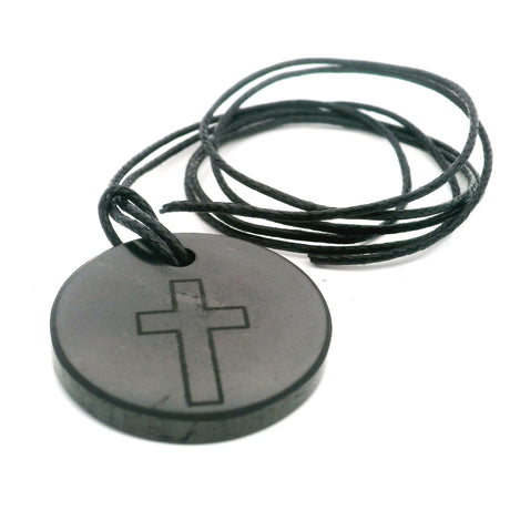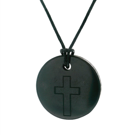 Shungite Necklace On Cord - Engraved with Cross