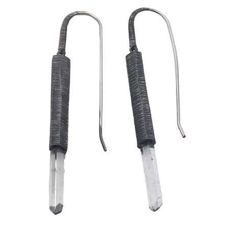 Regular price $4900Unit price /UnavailableLow stock (6 units)Unpolished Quartz Crystal Delving Arrow Hoop Earrings