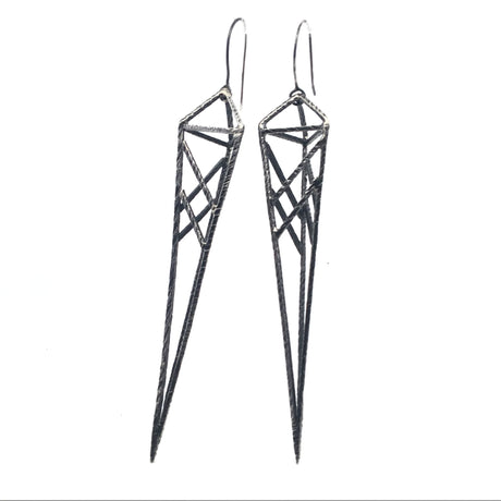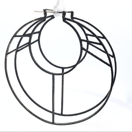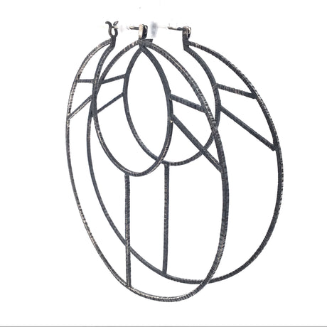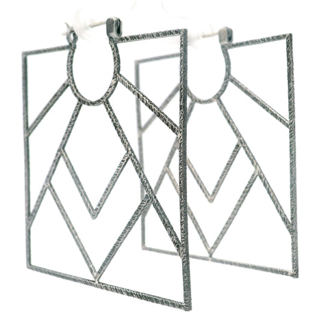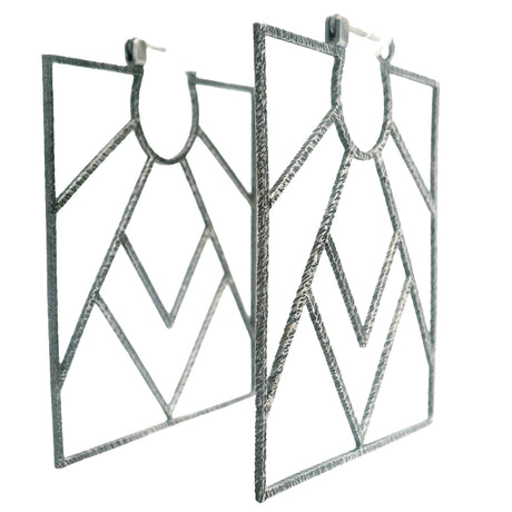 Sun Over Mountain Oxidized 925 Sterling Silver Square Window Hoop Earrings