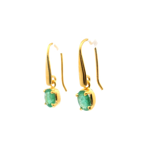 Regular price $10900Unit price /UnavailableVery low stock (1 unit)Faceted Emerald Oval Dangle Earrings with Gold Overlay Prong Set in 925 Sterling Silver