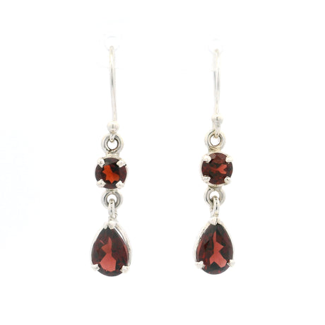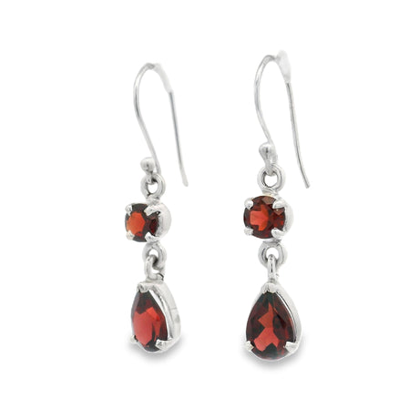 Faceted Garnet Round & Pear Dangle Earrings Prong Set in 925 Sterling Silver