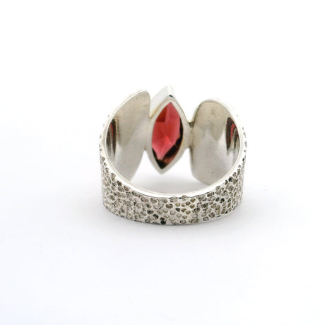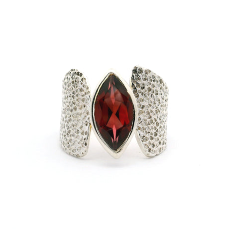 Regular price $2400Unit price /UnavailableVery low stock (1 unit)Faceted Garnet Sharp Oval Ring Bezel Set in Wide Textured Band of 925 Sterling Silver sz7