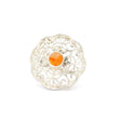 Radiant carnelian takes center stage in this enchanting ring, showcasing a lustrous round stone that glows with warm, sunset-inspired hues. The delicate floral filigree setting wraps around the gem like nature's own jewelry box, adding vintage charm and intricate detail that catches the light beautifully. Sized at 9, this piece is ready to make a statement on your hand. Carnelian is believed to spark creativity and confidence, making it the perfect companion for anyone seeking a touch of warmth and inspiration. Whether you're drawn to its rich color, its artisanal craftsmanship, or its metaphysical properties, this ring brings timeless elegance with a playful spirit.