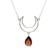 Faceted Garnet Drop Necklace Dangling from Moon Bezel Set in 925 Sterling Silver