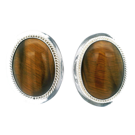 Regular price $16900Unit price /UnavailableVery low stock (1 unit) Tigers Eye Clip Earrings - Oval Cabochon With Silver Rope & Bezel Edge