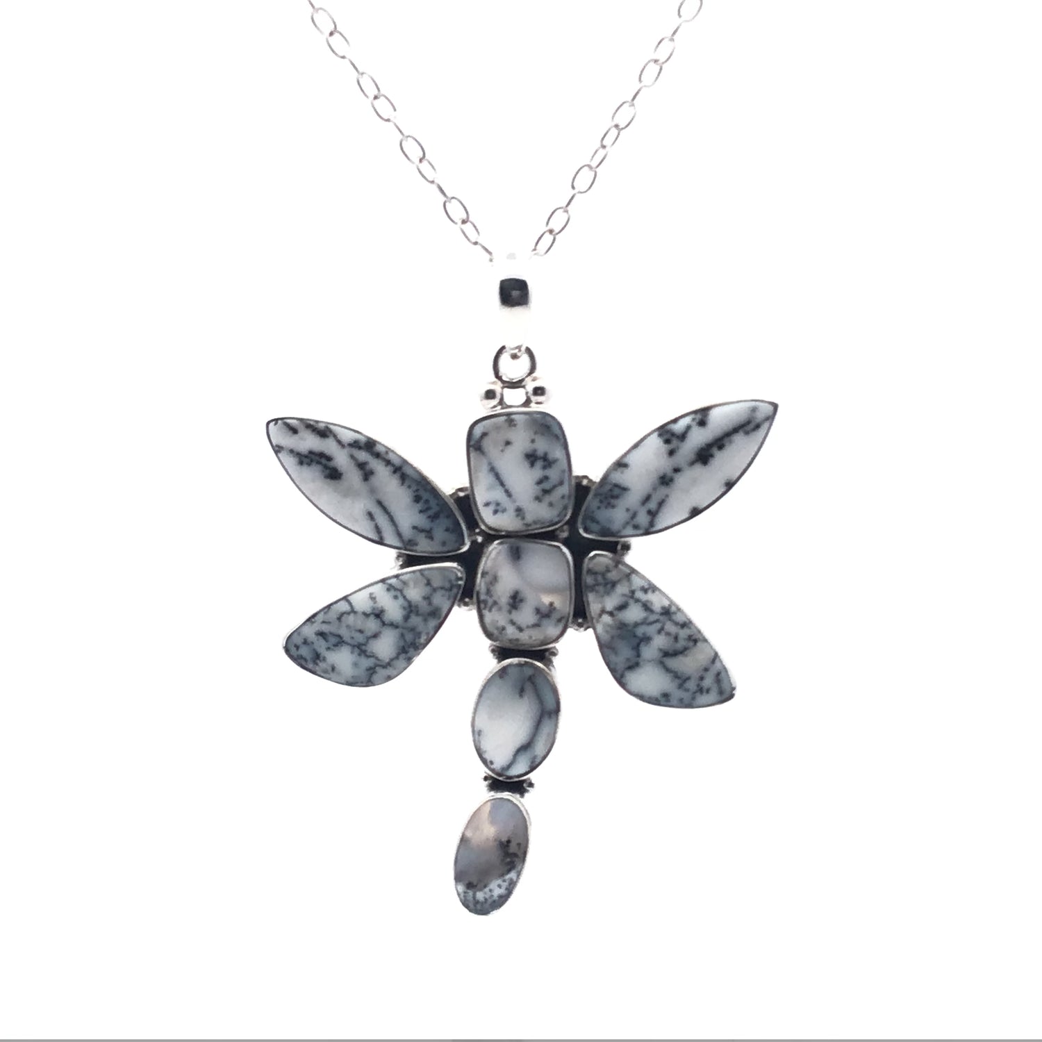 Dendritic Opal Dragonfly Necklace Unique Shape Cabochons - Pendant on 18" Link Chain - Orientation 1 is backordered and will ship as soon as it is back in stock.