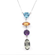 Multi Gemstone Faceted Drop Necklace with Box Chain Trillion Blue Topaz Sharp oval Citrine, Round Amethyst & Oval Prasiolite