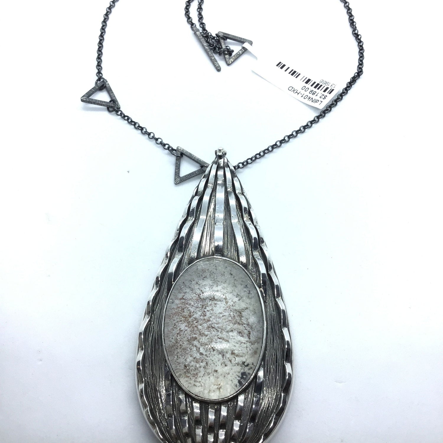 Lodolite Pendant With Toggle Chain - Large Oval Cabochon With Glittering White Inclusions Bezel Set In Avant-garde Flowing Silver Pear With Textured Layers - Opens Into Locket On Toggle Chain With 3 Length Options is backordered and will ship as soon as it is back in stock.