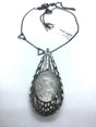 Lodolite Pendant With Toggle Chain - Large Oval Cabochon With Glittering White Inclusions Bezel Set In Avant-garde Flowing Silver Pear With Textured Layers - Opens Into Locket On Toggle Chain With 3 Length Options