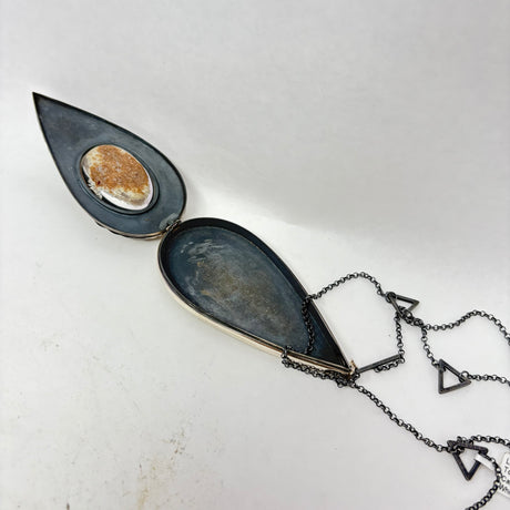 Regular price $10900Unit price /UnavailableVery low stock (1 unit)Bumblebee Jasper Pendant - Elongated Rectangle Cabochon with 925 Sterling Silver Bezel 3"+