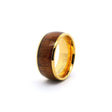 Titanium Ring 9mm Yellow Gold IP Plated with Hawaiian Koa Wood Inlay s8.5
