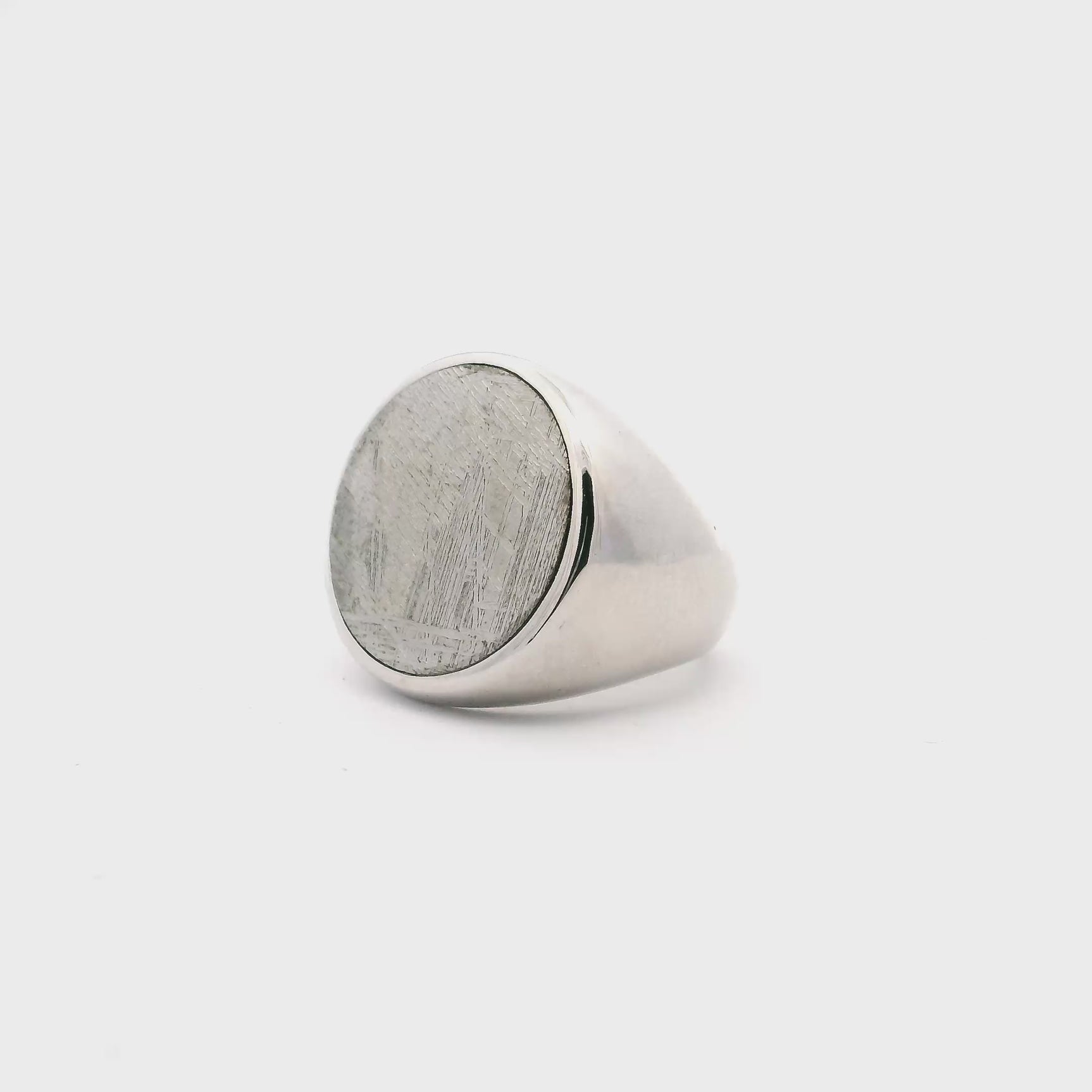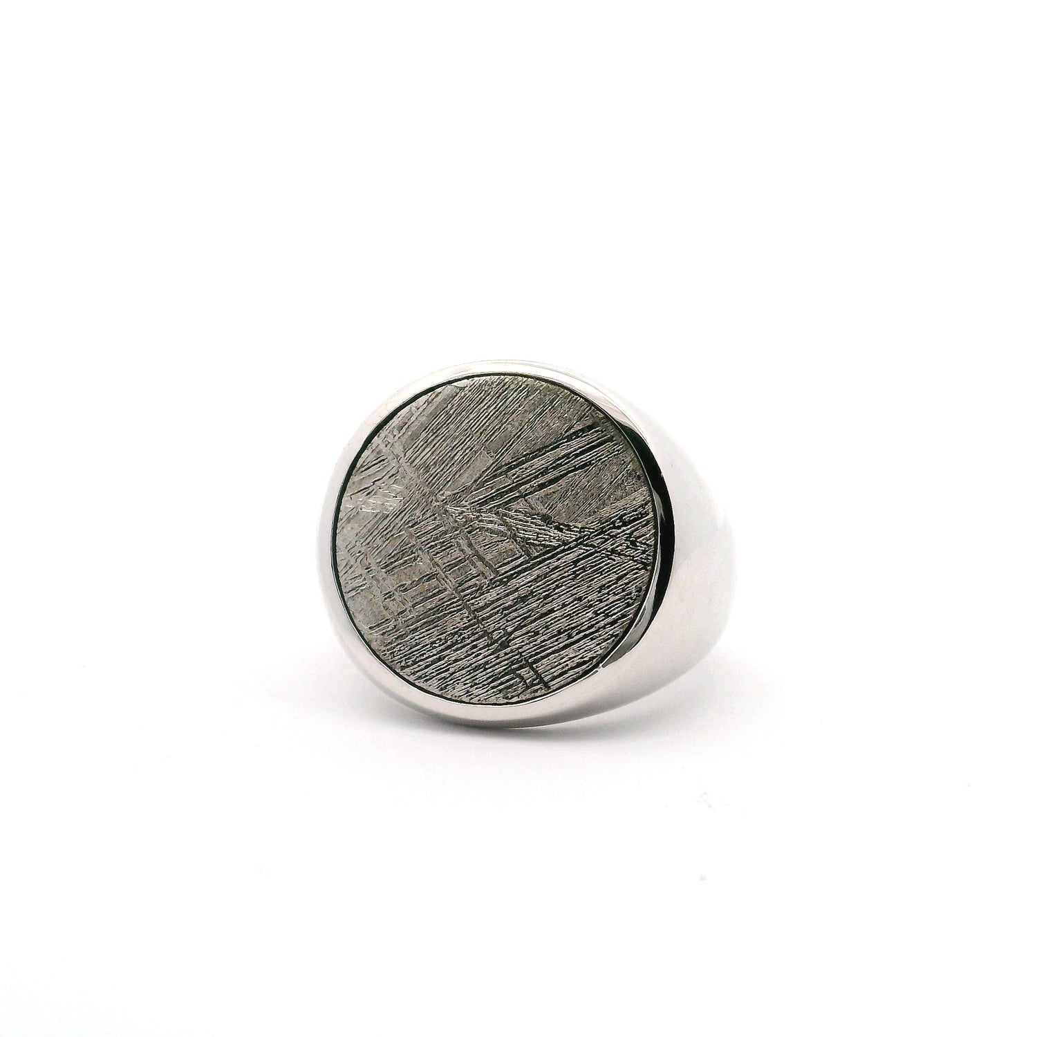 Muonionalusta Meteorite Ring with White Gold Vermeil - Round
