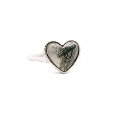 Regular price $51900Unit price /UnavailableLow stock (6 units)Munionalusta Meteorite Heart Ring with Rhodium Vermiel and Sapphire Crystal Cabochon
