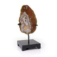 Agua Nueva Agate Geode on a Custom Black Square Stand with Trapezoidal Designs - Gray & Beige with a Small Druze Pocket is backordered and will ship as soon as it is back in stock.