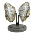 Agua Nuvea Agate Geode Pair on Custom Swivel Stand with Brush Detail