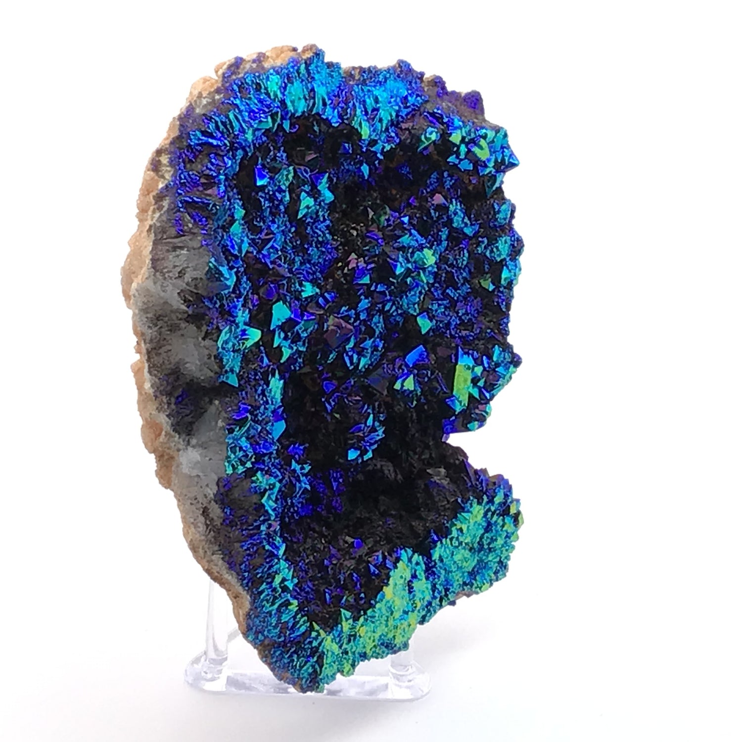 Black Titanium Coated Moroccan Geode Plaque on Lucite Stand