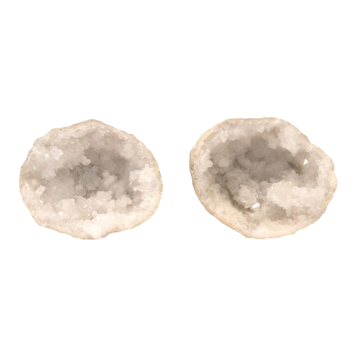 Pre-Cracked Mini Moroccan Geode Moroccan geodes typically feature a limestone exterior encasing an interior lined with quartz crystals and/or chalcedony. These stones are known to foster positive energy and emit a soothing, calming aura. Each geode is unique, so expect natural variations in size, shape, and coloration in your piece.