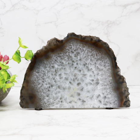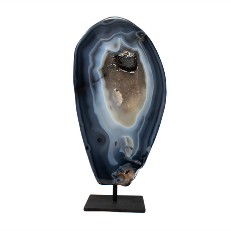 Regular price $25900Unit price /UnavailableVery low stock (1 unit)Agua Nuvea Agate Geode Pair on Custom Swivel Stand with Brush Detail