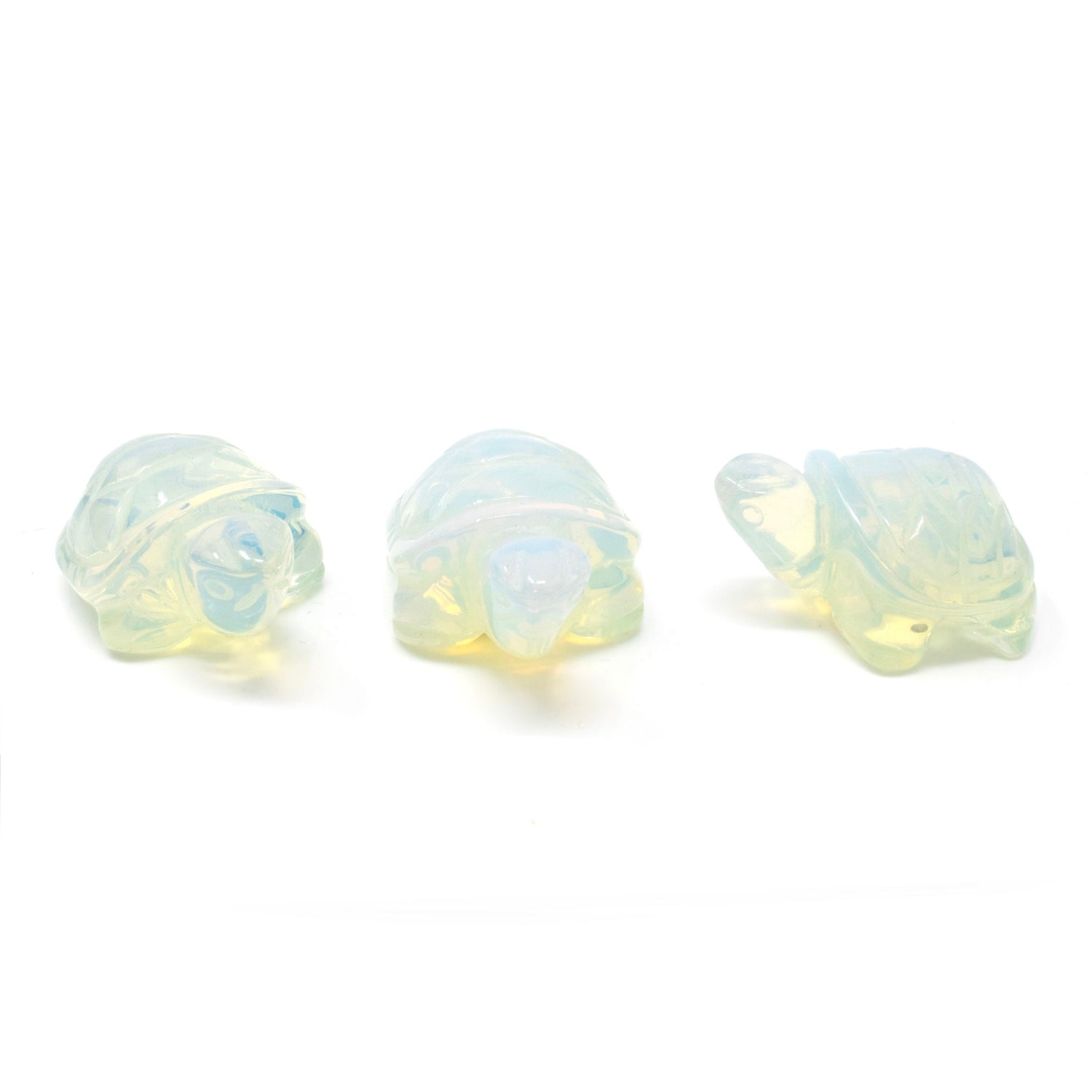 Introducing the captivating Opalite Turtle Carving, perfect for animal and carving lovers. Detailed with enchanting iridescent blues and whites, this turtle carving is a perfect accessory to add to any home. Its unique and rare design is sure to bring good luck to any space. Enjoy the beauty of this exquisite piece for years to come.