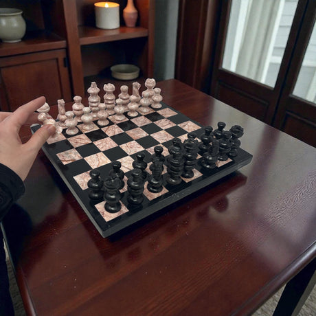 Hand Carved Mexican Onyx Stone Chess Set - Medium 10.5"