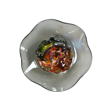 Explore hand-blown glass wall art featuring colorful plates—unique decor to brighten any space.