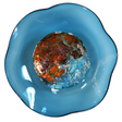 Introducing a unique blown glass wall plate, blending artistry and home decor. The delicate blue jewel tones create a one-of-a-kind feel. With its larger size, it makes a bold statement on your wall. Hang it alone or alongside other wall decor for a beautiful effect. The captivating blue tones add the perfect accent to your home. This hand blown plate includes a glass stem for easy mounting on the bracket. Versatile for wall use, not suitable for table top. 1 bracket included.