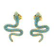 Nano Crystal Stud Earrings - Turquoise Snake with Blue Eyes in Gold Vermeil over 925 Sterling Silver