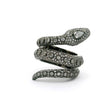 Unleash your inner mystique with the Nano Stone Ring – a captivating wrap-around design featuring a striking black snake, meticulously crafted in 925 sterling silver topped with a dark, lustrous overlay. This enchanting piece boasts gleaming quartz stone accents that nestle along the sinuous body of the serpent, adding an ethereal sparkle and depth. Designed for women who dare to enchant, this size 7 statement ring marries modern elegance with mythical allure, making it a must-have addition to any jewelry collection.