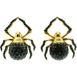 Nano Stone Stud Earrings - Black Spider with Green Eyes in Gold Vermeil over 925 Sterling Silver