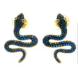 Nano Stone Stud Earrings - Blue Snake with Green Eyes in Gold Vermeil over 925 Sterling Silver