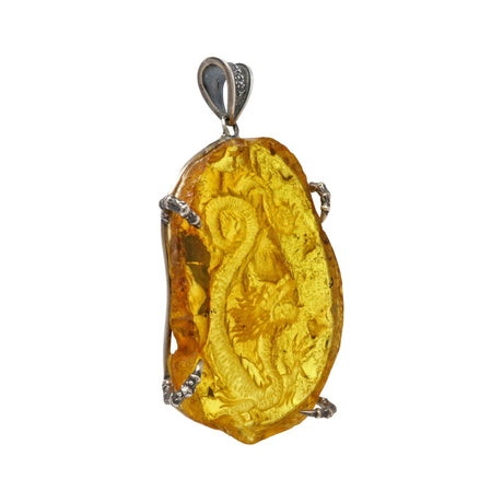 Hand-carved Honey Amber Dragon Pendant - Large Flat Specimen