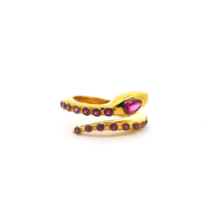 Nano Stone Ring - Gold Snake with Pink Nano Stones in Gold Vermeil over 925 Sterling Silver sz7