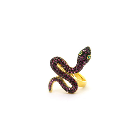 Regular price $25900Unit price /UnavailableVery low stock (1 unit)Nano Stone Ring - Pink Snake with Green Eyes in Gold Vermeil over 925 Sterling Silver