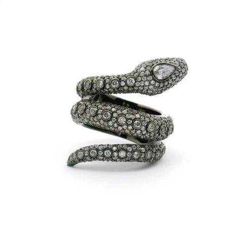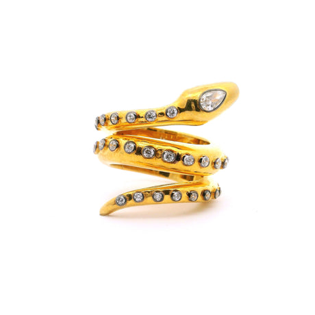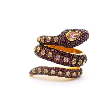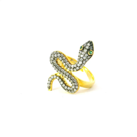 Nano Stone Ring - Quartz Snake with Green Eyes in Gold Vermeil over 925 Sterling Silver szAdj.