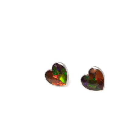 Regular price $11900Unit price /UnavailableVery low stock (1 unit)Ammolite Fossil Inlay Heart Stud Earrings With Silver Bezel