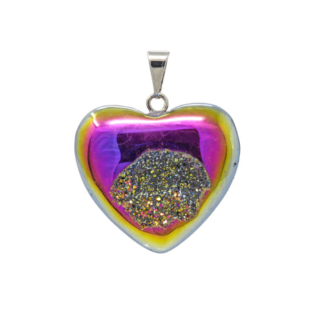 Regular price $2900Unit price /UnavailableVery low stock (3 units)Titanium Druze Heart Drilled Pendant - Purples & Golds