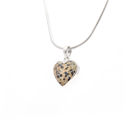 Regular price $13900Unit price /UnavailableVery low stock (1 unit)Dalmatian Jasper Pendant - Heart Cabochon with Simple 925 Sterling Silver Bezel