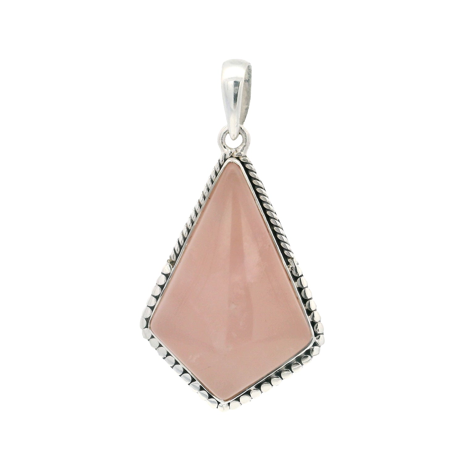 Rose Quartz Cabochon Rope Bezel Set Pendant