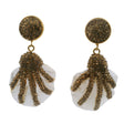Baroque Pearl Dangle Earrings - Flat Fan-shaped Baroque Pearl with Octopus of Gold Swarovski Crystals in Gold Vermeil over 925 Sterling Silver