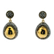 Baroque Pearl Dangle Earrings - Gold Overlay Baroque Pearl with Marcasite & Gold Swarovski Crystals & Gold Vermeil over 925 Sterling Silver