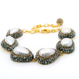 Baroque Pearl Link Bracelet - 6 Pear Baroque Pearls with Marcasite & Gold Swarovski Crystals & Gold Vermeil over 925 Sterling Silver