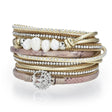 Tree of Life Design Gold Leather & Pearls Double Wrap Bracelet with Magnetic Clasp - Sacred Geometry