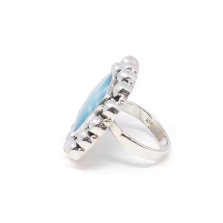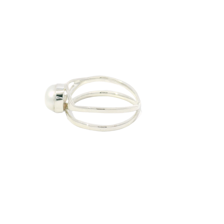 Freshwater Pearl Ring - Round Pearl Bezel Set in 925 Sterling Silver on Open Double Band sz7.5