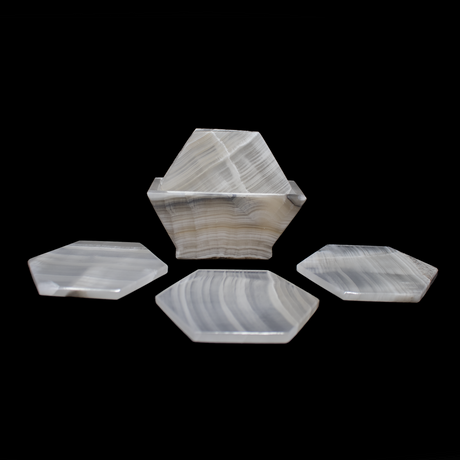 Regular price $5900Unit price /UnavailableLow stock (6 units)Banded Pearlescent Onyx Coasters - Set of 6 with Holder - Hexagons