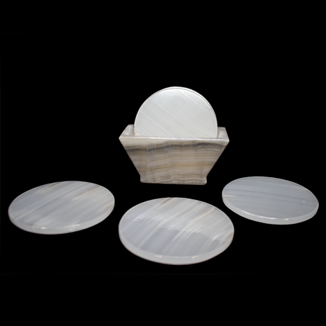 Banded Pearlescent Onyx Coasters - Set of 6 with Holder - Rounds