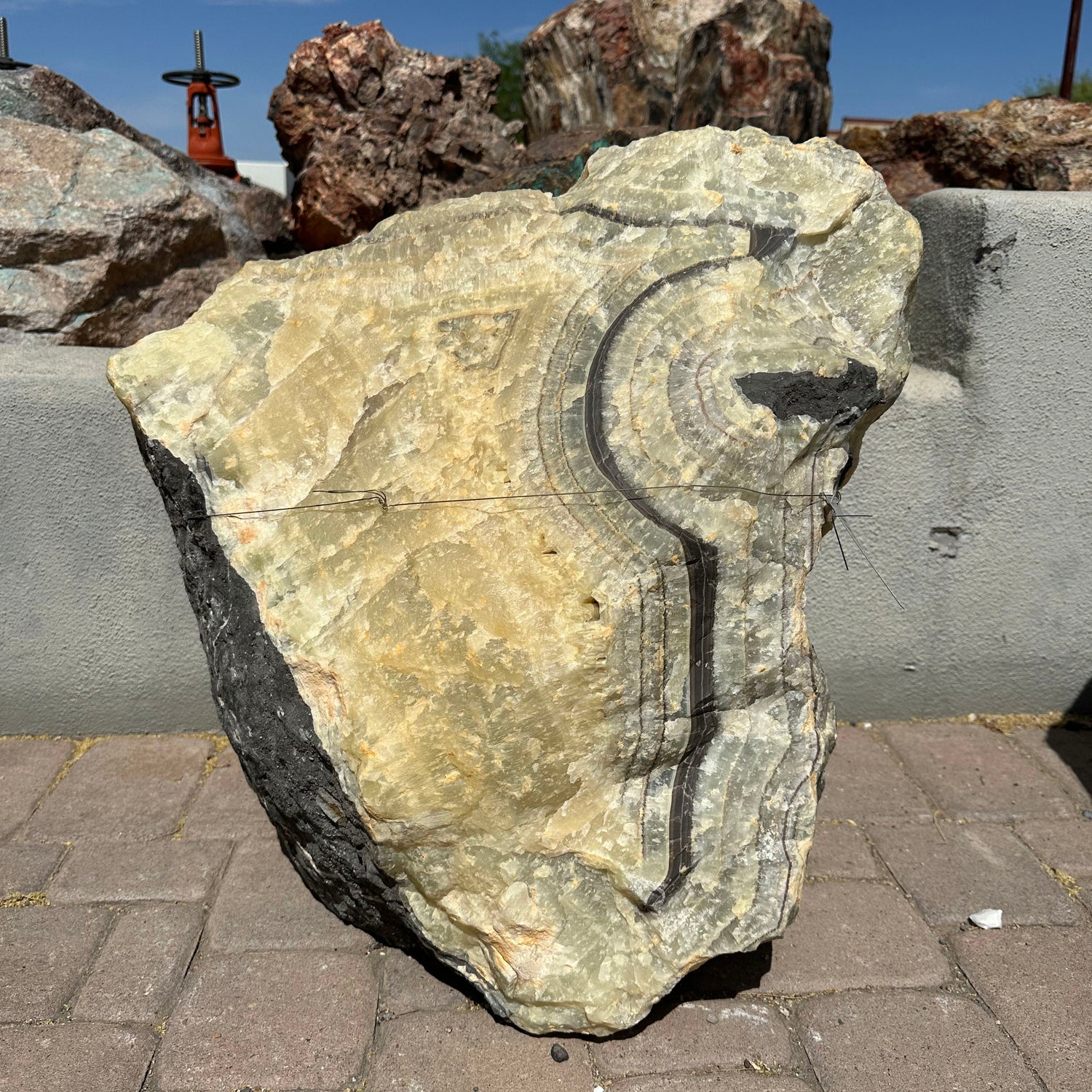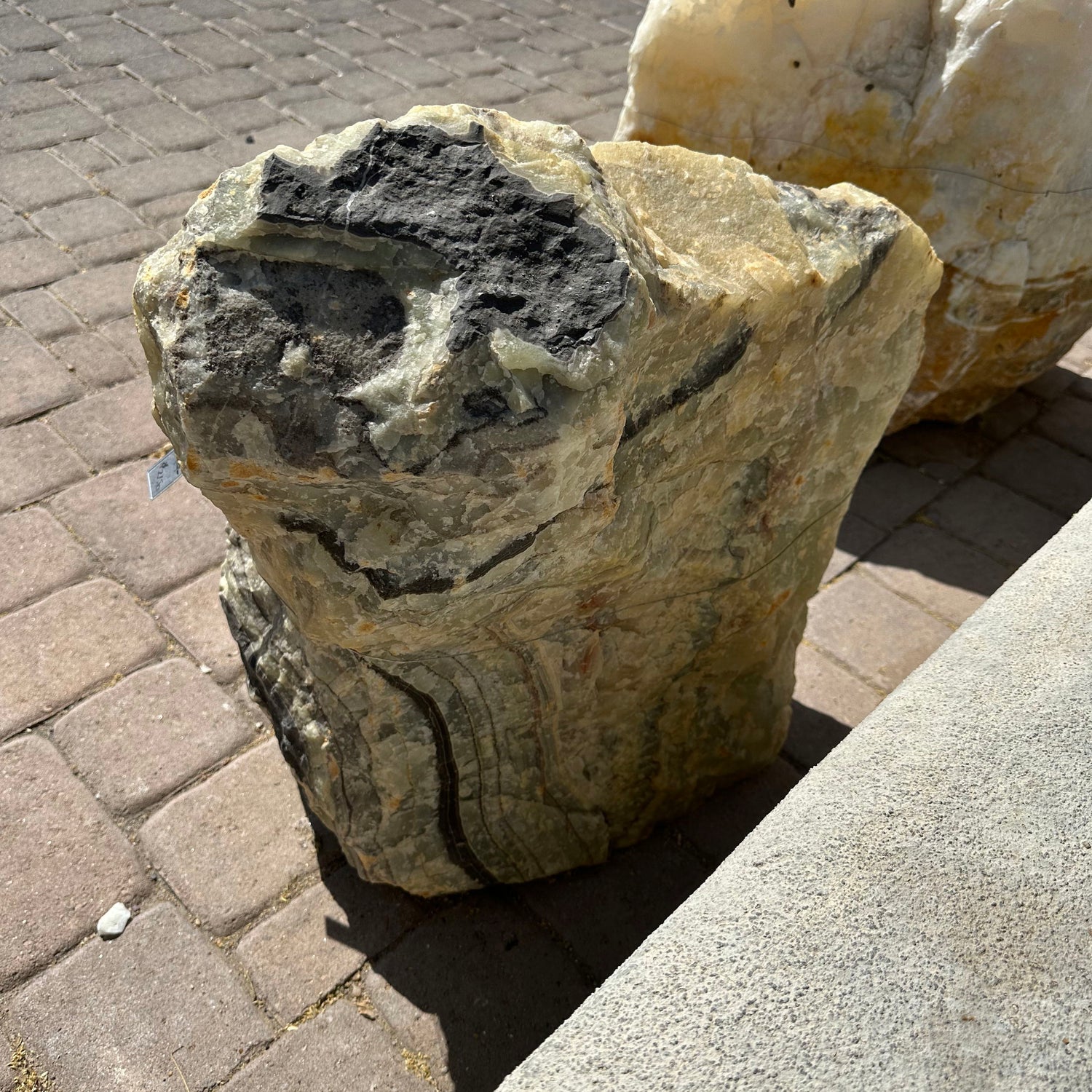 This Green & Gray Onyx Boulder Fountain - with a Shield Shape is a premium natural stone outdoor water feature designed for backyards, courtyards, patios, and garden landscapes. Its a blend of green and gray tones paired with a shield-like face and a substantial boulder-like form that brings sculptural presence make it a striking focal point for any tranquil outdoor setting. The fountain’s flow encourages relaxation with soothing sound and movement, helping your outdoor space feel calm and inviting. Create a peaceful, eye-catching focal point for your desert landscape. Let Rare Earth Gallery’s white-glove service make your fountain dreams come true—simply choose your fountain, tell us where it goes, and we’ll handle the rest, from delivery to installation. IMPORTANT: the purchase price listed is for the FOUNTAIN ONLY and DOES NOT INCLUDE the cost of a basin, pump, parts or installation. Before purchasing a fountain online, we STRONGLY recommend you call us at (480) 575-4360 for a FREE consultation to discuss these additional costs and schedule a pre-site inspection. Also, free shipping does NOT apply to fountains, please call for a quote.