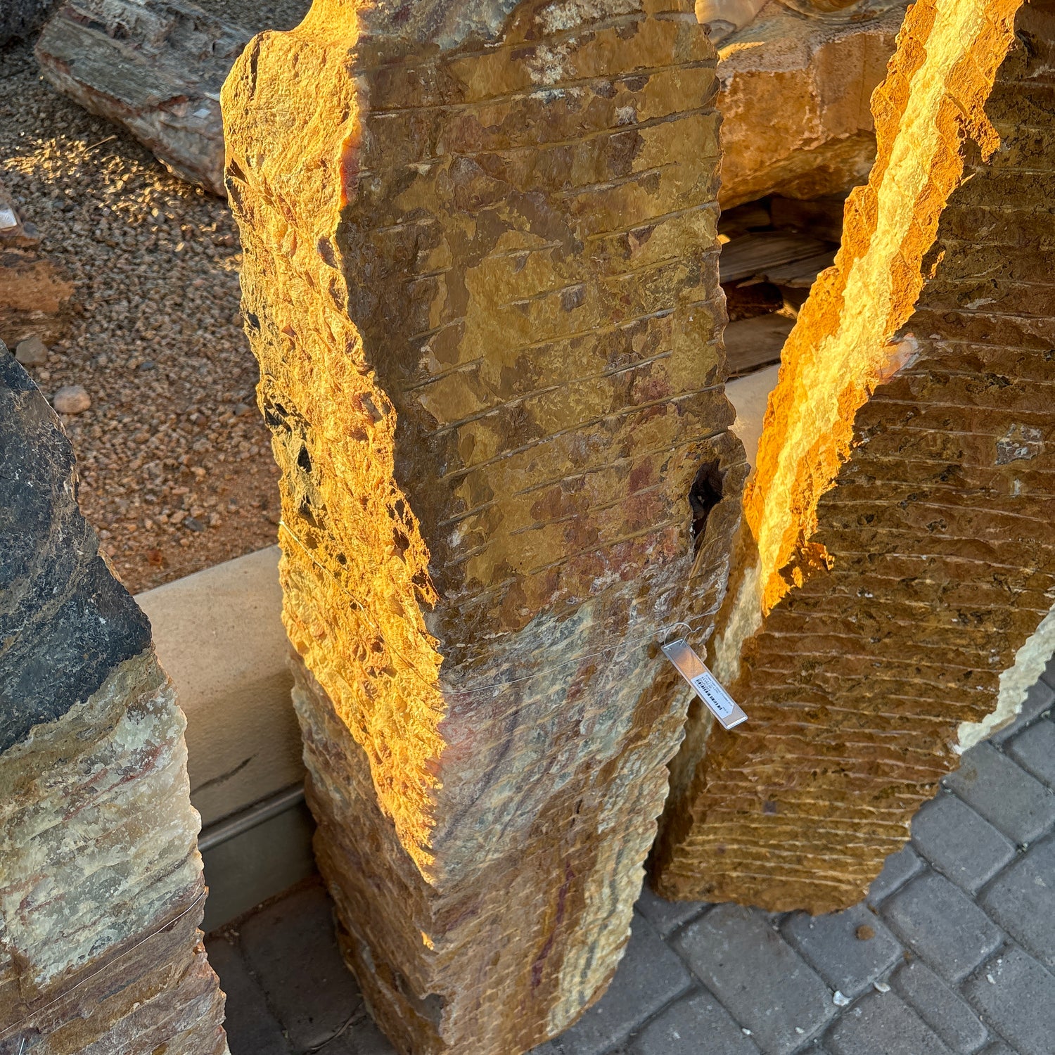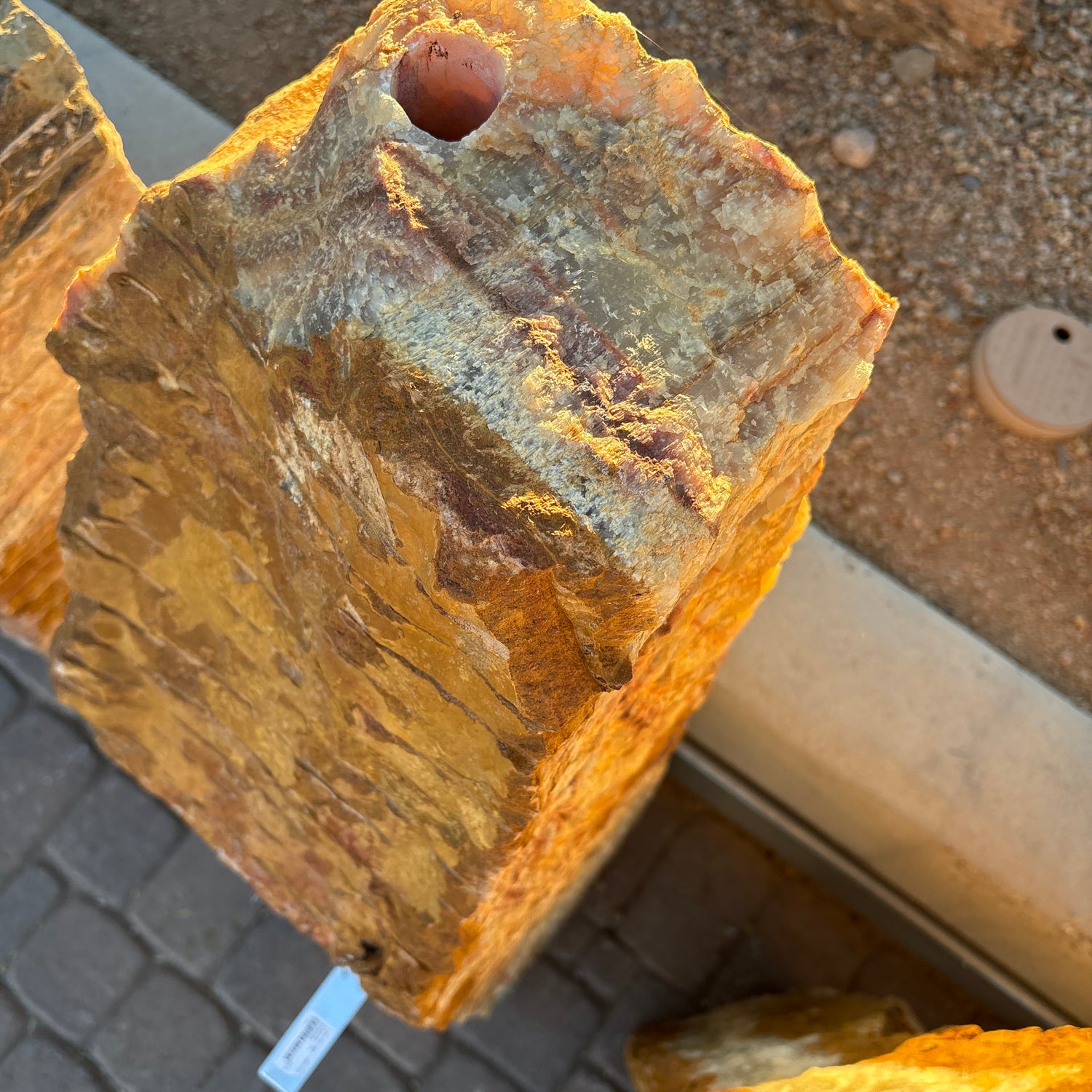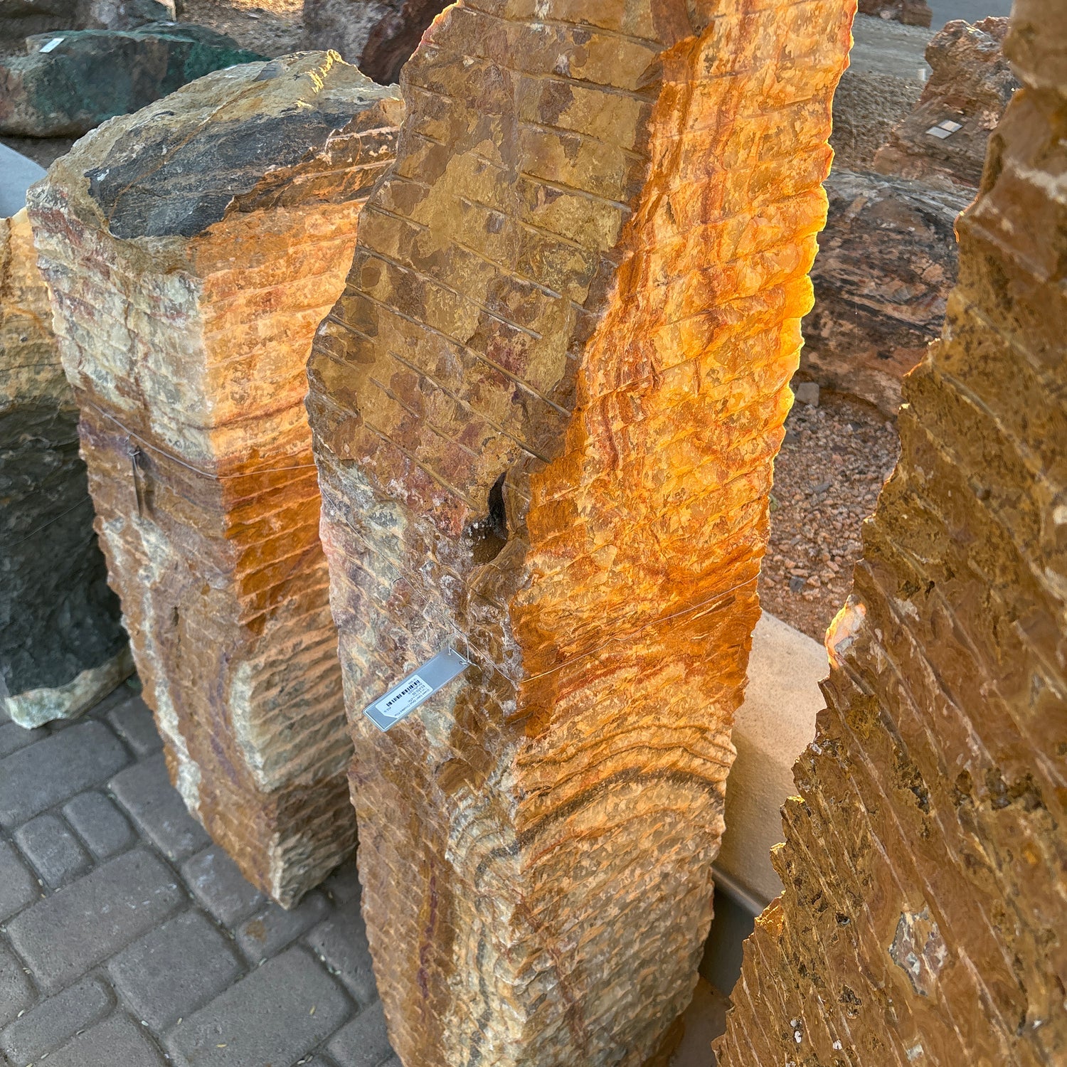 This Green Talan Onyx Chiseled Pillar Fountain with an icluded Pin Plate is a premium natural stone outdoor water feature designed for backyards, courtyards, patios, and garden landscapes. Its distinctive green onyx coloration with pronounced natural veining and a vertical pillar form that adds architectural height and elegance make it a striking focal point for any tranquil outdoor setting. The fountain’s flow encourages relaxation with soothing sound and movement, helping your outdoor space feel calm and inviting. Create a peaceful, eye-catching focal point for your desert landscape. Let Rare Earth Gallery’s white-glove service make your fountain dreams come true—simply choose your fountain, tell us where it goes, and we’ll handle the rest, from delivery to installation. IMPORTANT: the purchase price listed is for the FOUNTAIN ONLY and DOES NOT INCLUDE the cost of a basin, pump, parts or installation. Before purchasing a fountain online, we STRONGLY recommend you call us at (480) 575-4360 for a FREE consultation to discuss these additional costs and schedule a pre-site inspection. Also, free shipping does NOT apply to fountains, please call for a quote.
