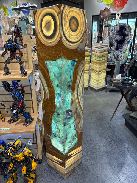 Owl Eyes - Green Talan Onyx & Fluorite Inlaid Pedestal Luminary