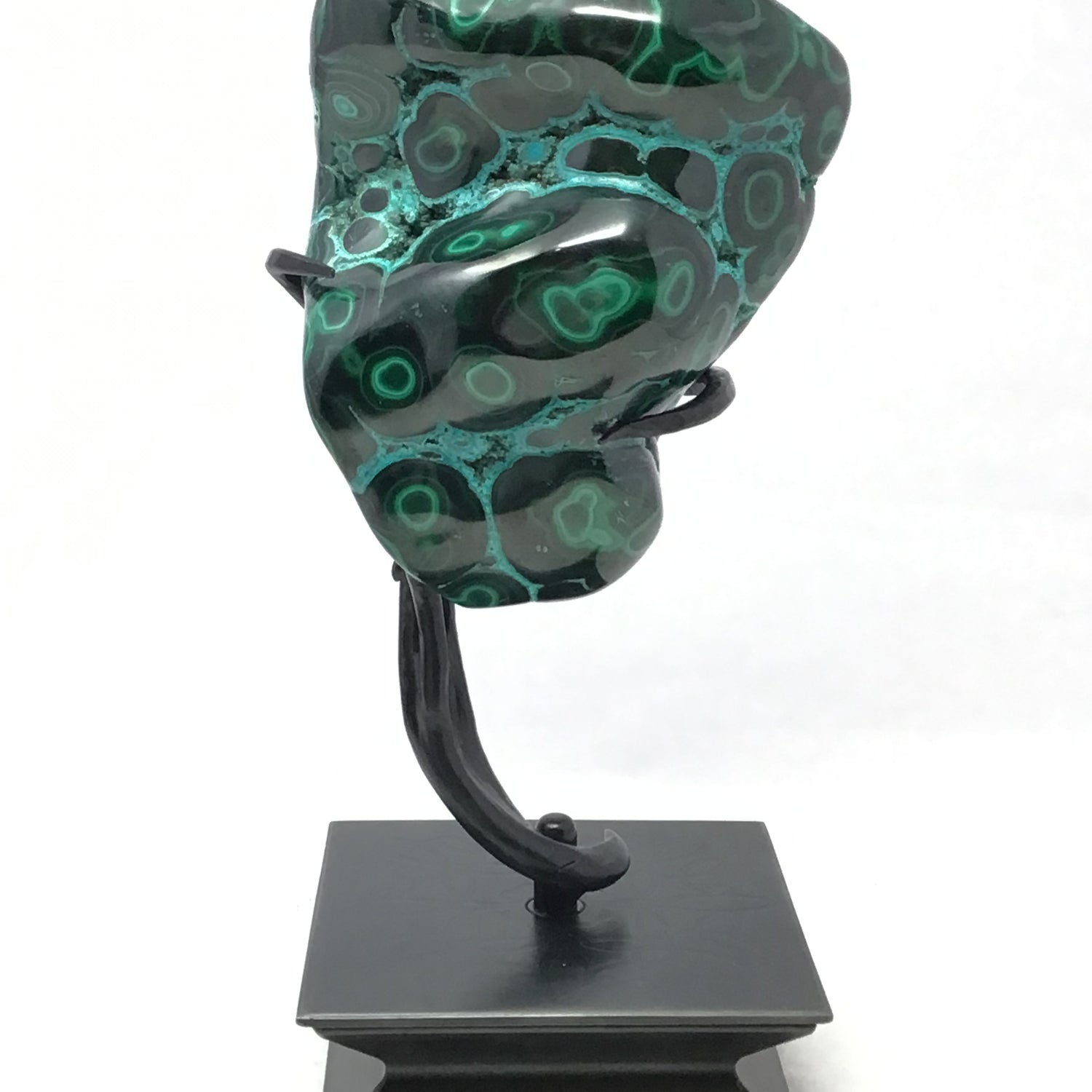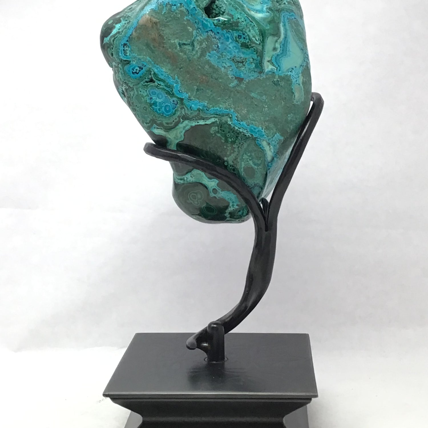 Chrysocolla Malachite Polished Freeform on Custom Etched Rotating Vine Stand