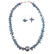 Aquamarine & Muonionalusta Beaded Necklace & Earrings Set with 3mm Faceted Ruby Spacers